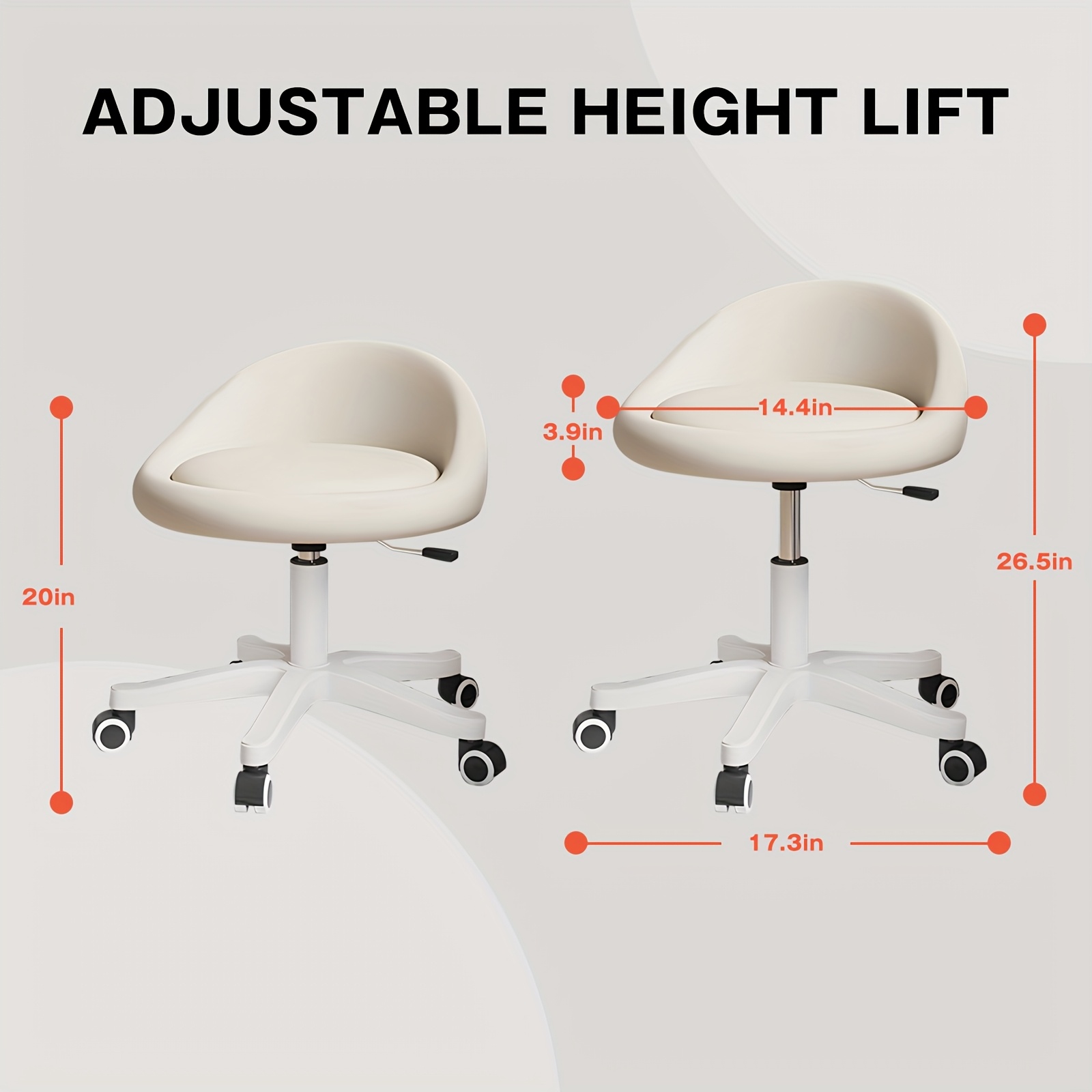 1pc\u002F2pcs Rolling Vanity Stool with Low Back, Height Adjustable Round Makeup Chair with 360° Swivel Wheels, PU Leather Dressing Stool for Bedroom, Salon, And Beauty Room